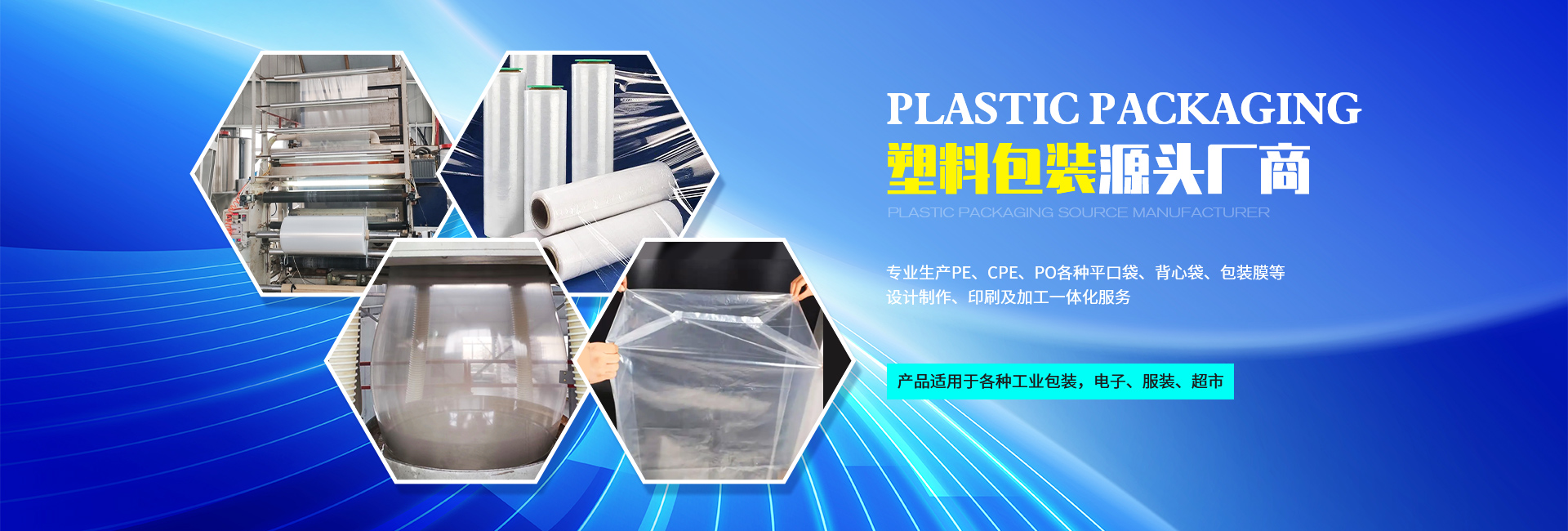產(chǎn)品種類:PE、CPE、PO各種平口袋、背心袋、包裝膜等等。